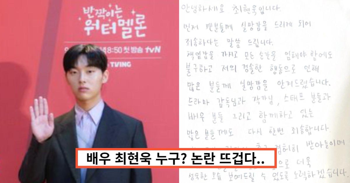 배우 최현욱, 담배꽁초 논란… 방영 중인 드라마 ‘반짝이는 워터멜론’ 어쩌나..